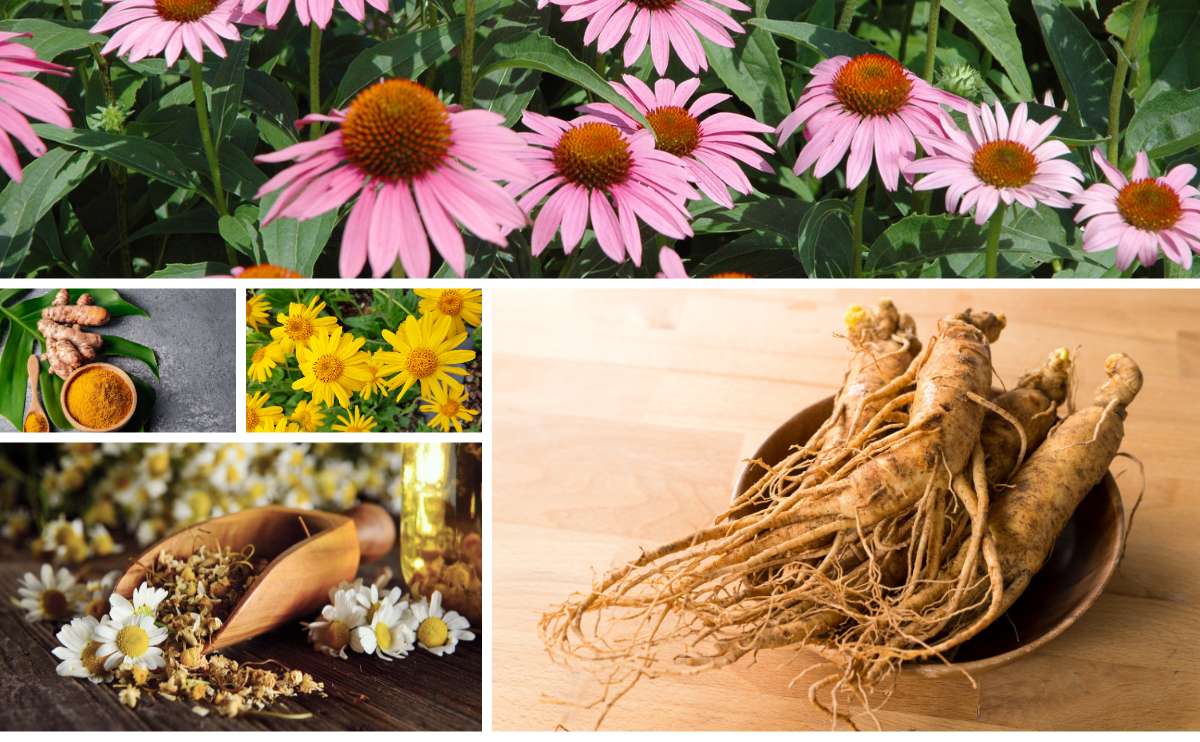 - Fortalecimiento del Sistema Inmunológico: Echinacea, ajo y ginseng son plantas que ayudan a mejorar las defensas del cuerpo, haciéndolo menos susceptible a infecciones.